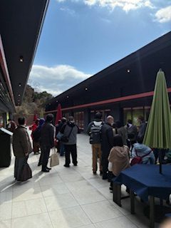 最初は宇土の粟島神社で参拝です。有名な小さな⛩くぐりも、利用者と職員楽しく挑戦させて頂きました。何度もくぐる方はいたりと、神聖な場所にも関わらず沢山の笑顔と笑い声が聞けました(*^-^*)