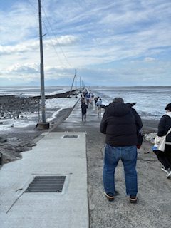 さぁ。。最後は宇土半島の海岸です。満潮と干潮で全く違う景色になり、ちゃんと干潮時に合わせて到着。どのくらいの距離かは把握してませんが、歩いて行けるんですね~。しかし、先ほどもお伝えしたようにメチャクチャ寒くて、風もすごく頭の中まで凍りそうな環境でした(ToT)/~~~  けど、みんな行くんです・・・歩いて行くんです。凄いでしょう(一一”) これまた思い出になりました♬
