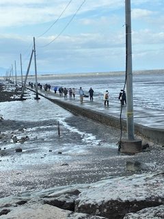 さぁ。。最後は宇土半島の海岸です。満潮と干潮で全く違う景色になり、ちゃんと干潮時に合わせて到着。どのくらいの距離かは把握してませんが、歩いて行けるんですね~。しかし、先ほどもお伝えしたようにメチャクチャ寒くて、風もすごく頭の中まで凍りそうな環境でした(ToT)/~~~  けど、みんな行くんです・・・歩いて行くんです。凄いでしょう(一一”) これまた思い出になりました♬